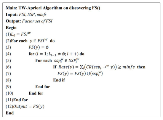 Factor Set of FSI (FS): The factor set of status itemsetcan be expressed as, for any status set sequence patternin; ifis still a status set sequence pattern, thenis an element of. The factor set of the frequent status itemset can be expressed as: