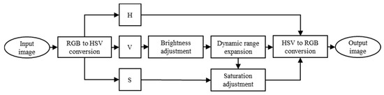 - Lyu, W.J.; Lu, W.; Ma, M. No-reference quality metric for contrast-distorted image based on gradient domain and HSV space. J. Vis. Commun. Image Represent. 2020, 69, 102797–102806. [Google Scholar] [CrossRef]