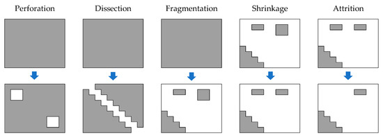 - Wang, X.; Blanchet, F.G.; Koper, N. Measuring habitat fragmentation: An evaluation of landscape pattern metrics. Methods Ecol. Evol. 2014, 5, 634–646. [Google Scholar] [CrossRef]