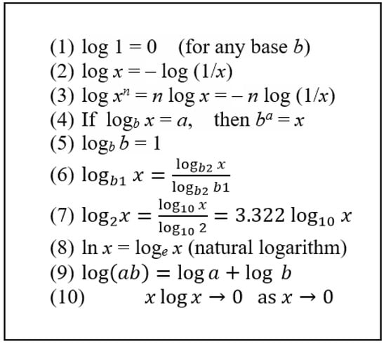 where pi is the probability of the message or configuration i. Here, we dropped the symbol for base 2 for simplicity. In the case of equal probabilities for all N messages of configurations, we have pi = 1/N = constant, and the general relation in Equation (10) reduces to