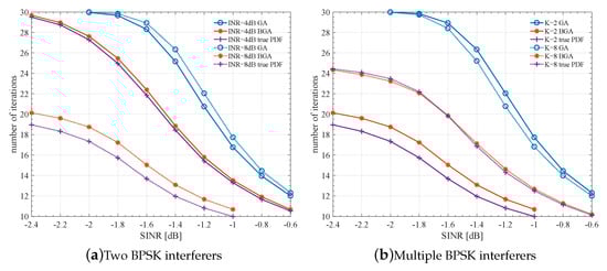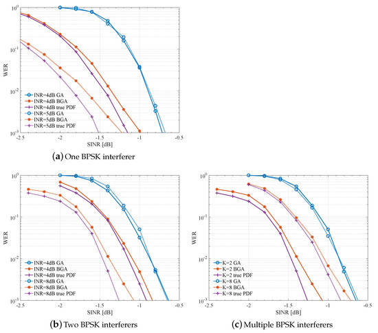 - Rabiei, A.M.; Beaulieu, N.C. An analytical expression for the BER of an individually optimal single cochannel interferer BPSK receiver. IEEE Trans. Commun. 2007, 55, 60–63. [Google Scholar] [CrossRef]