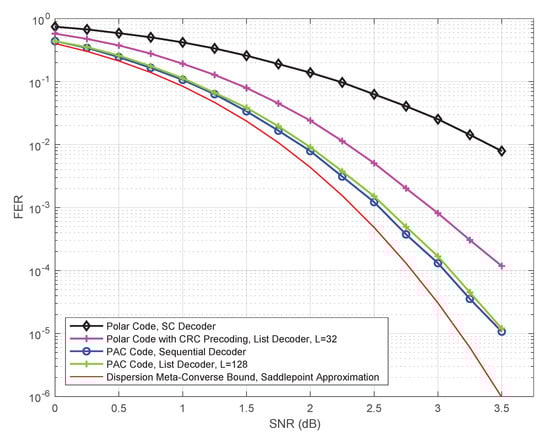 - Polyanskiy, Y.; Poor, H.V.; Verdu, S. Channel coding rate in the finite blocklength regime. IEEE Trans. Inf. Theory 2010, 56, 2307–2359. [Google Scholar] [CrossRef]