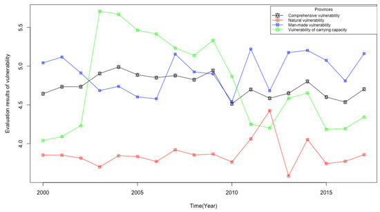 - Step 3: Assessment of water resources vulnerability. The indicator data of the Song-Liao River Basin from 2000 to 2017 is substituted into the model to obtain the water resources vulnerability evaluation value in the past few years.