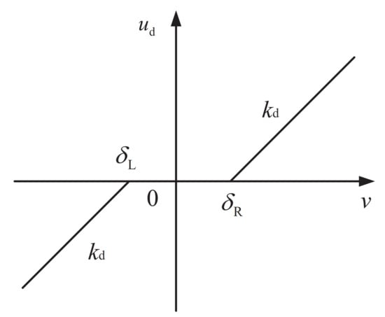 The control actuator of an actual system usually has asymmetrical dead-zone nonlinearity [,], as shown in Figure 1.  is the gain,  and  are the uncertain boundary parameters of the dead-zone.