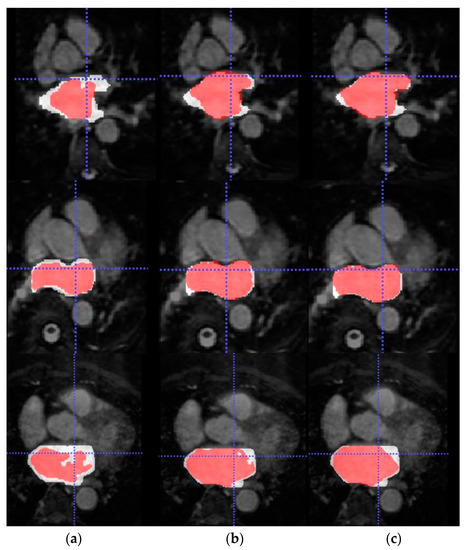 - Yang, X.; Wang, N.; Wang, Y.; Wang, X.; Nezafat, R.; Ni, D.; Heng, P.A. Combating uncertainty with novel losses for automatic left atrium segmentation. In International Workshop on Statistical Atlases and Computational Models of the Heart; Springer: Cham, Switzerland, 2018; pp. 246–254. [Google Scholar]