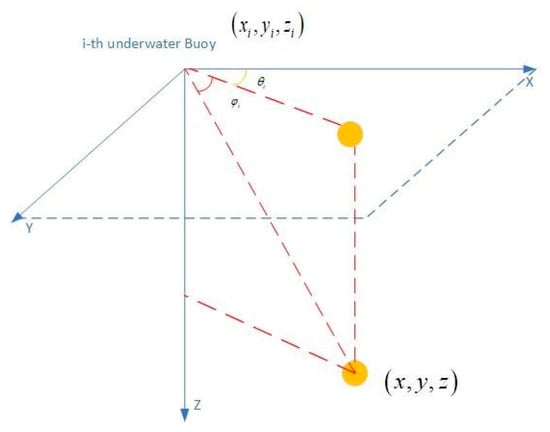 2.2. Measurement Model of the Distributed Passive Underwater Buoys