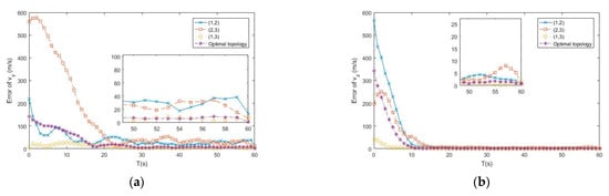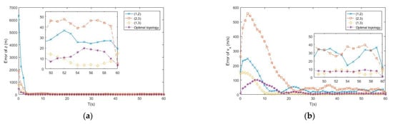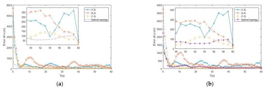 (a) Error of by different topologies of buoys; (b) Error of by different topologies of buoys.