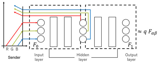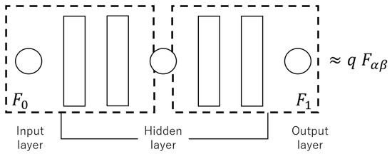 The neural network applied here is composed of seven layers of perceptrons, as shown in Figure 7, and is approximated to by training. Since in this section we suppose that the images are of grayscale, both the input and output layers of the neural network have a single neuron. In this proposed approach, the fourth layer is also designed as a single neuron. The whole neural network is divided into two parts; the first part is the first to fourth layers, which is assumed to represent a function , and the second part is the fifth to seventh layers, which is assumed to represent a function . As shown in Figure 5, using the learned neural network, the left boundary condition is replaced, from to the front half of the neural network , while the right boundary condition is replaced, from to the back half of the neural network . In this way, the boundary conditions are black-boxed and the information becomes difficult to leak.