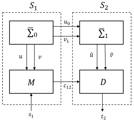 with two signals, , as inputs. The relationship between the two systems is shown in Figure 4. We set variables , to obtain the error system as follows: