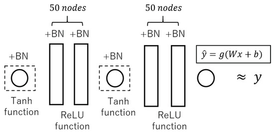 The neural network used in this study was a seven layer perceptron with batch normalization layers (the reasons why the batch normalization layers are used are explained later with data in Table 1 and Table 2).