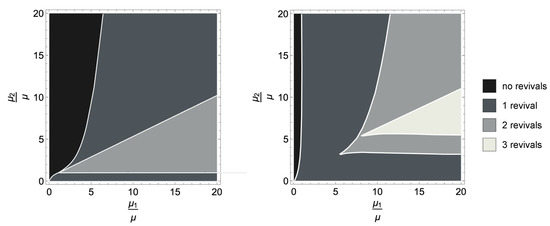 For the case of two waiting time distributions, one can analytically verify that the maximal number of revivals is one, and that revivals take place at the following: