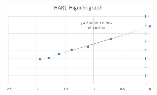 HAR1 Higuchi graph with log (L(k)) values (y-axis) versus log((1/k)) values (x-axis).