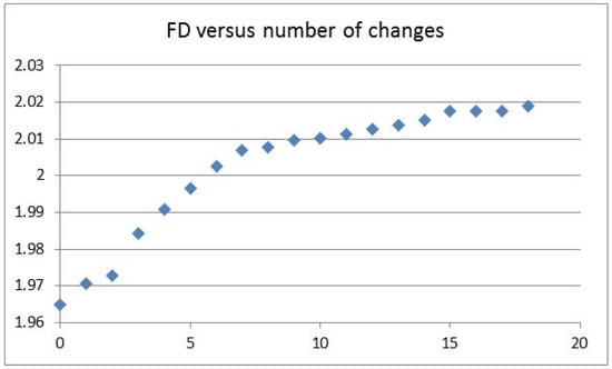 Fractal dimension FD values (y-axis) versus number of changes (x-axis).