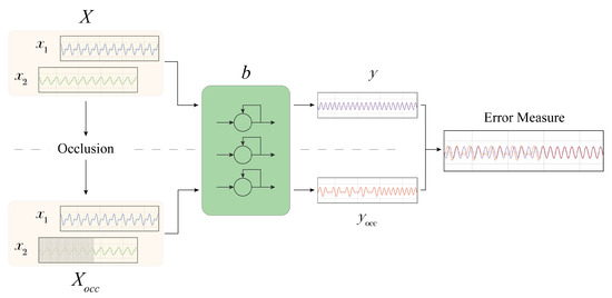 Signal occlusion is performed on each segment i with . For each x, we alter only a single segment per time. The alteration can be performed on any of the signals with , one at time or by considering any subset of signals in X. Algorithm 1 reports the occlusion procedure for a single signal.