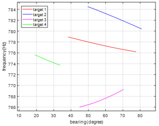 The true measurement of bearing and frequency for the four targets.