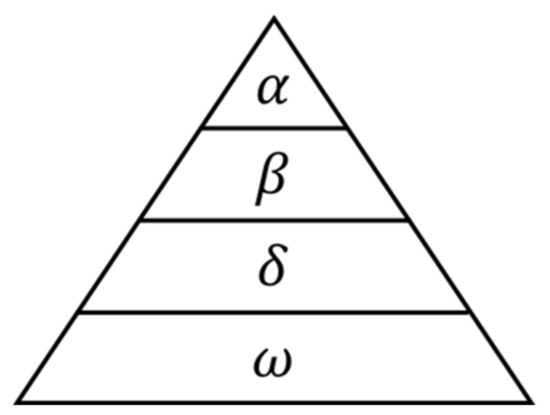 Grey Wolf Optimizer (GWO) is a swarm intelligence (SI) algorithm proposed by Mirjalili et al. [34] in 2014 that imitates the leadership hierarchy and hunting mechanism of grey wolves in nature. In this paper, it is used to optimize the parameters in SVM. The social hierarchy of gray wolves is shown in Figure 2. Grey wolves are divided into four levels from α to ω. The upper level wolves dominate the lower level ones, and the lower level wolves follow the upper level ones.