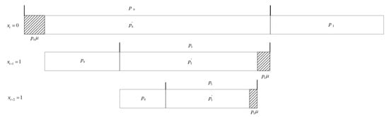 In the actual encoding and decoding processes, the codeword contains the information of the encoded symbols. In other words, when the context condition is known, the codeword must be decoded to a determined symbol . For , if both and are known, then there must be a determined decoding result ; in this case . In the encoding process of SPDCAC, if a symbol is not encoded at moment i, the information of is not included in the codeword . In the decoding process at this moment, cannot provide any information about , and it is necessary to make two alternative decoding attempts at this position. Therefore, at this moment, , there should be . However, if is an encoded symbol, regardless of the previous decoding process; it should be considered that both and are known at moment i, and we have .