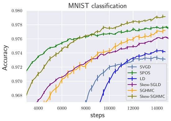 - Welling, M.; Teh, Y.W. Bayesian learning via stochastic gradient Langevin dynamics. In Proceedings of the International Conference on Machine Learning, Washington, DC, USA, 28 June–2 July 2011; pp. 681–688. [Google Scholar]