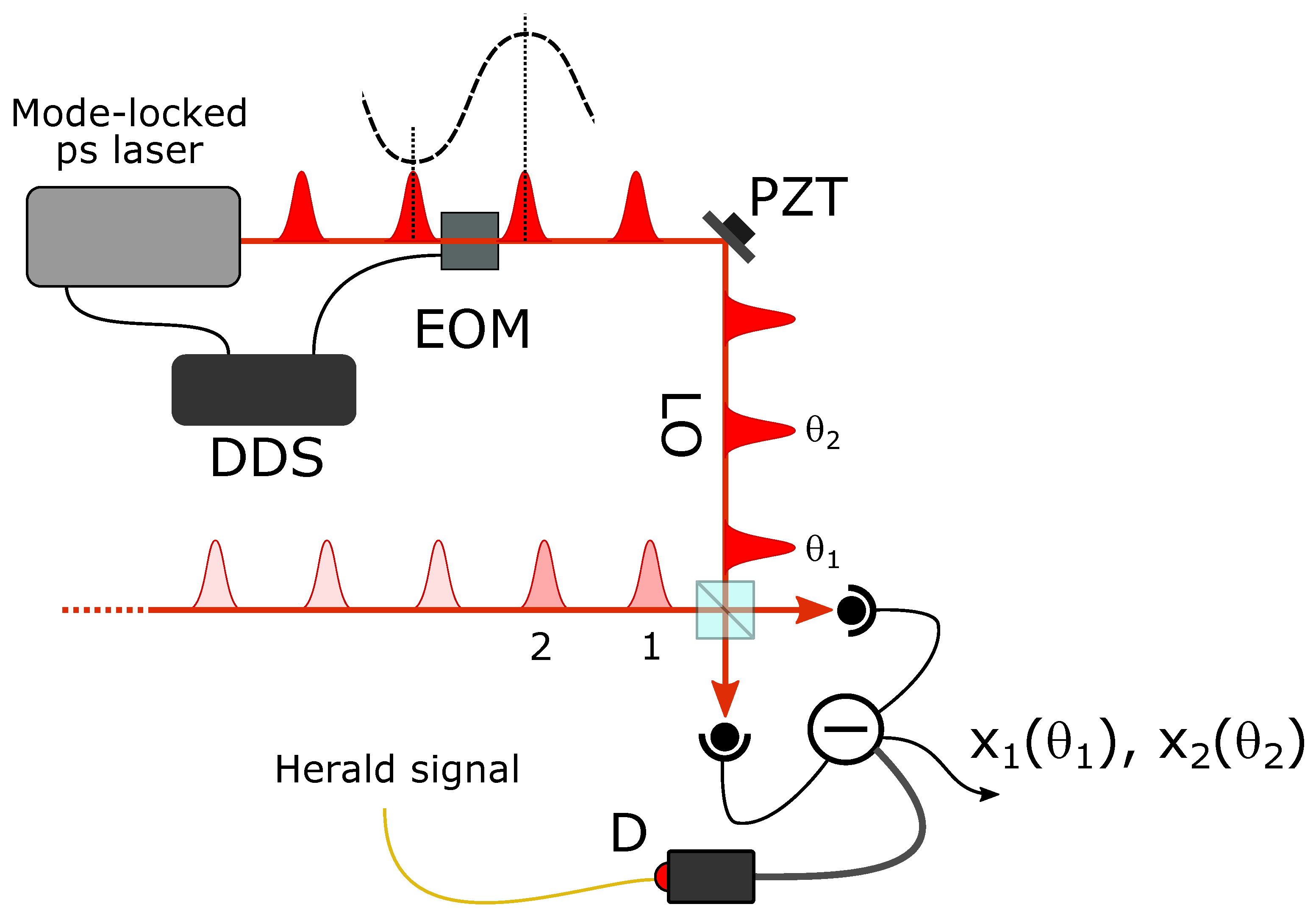 - Zavatta, A.; D’Angelo, M.; Parigi, V.; Bellini, M. Two-mode homodyne tomography of time-encoded single-photon ebits. Laser Phys. 2006, 16, 1501–1507. [Google Scholar] [CrossRef]