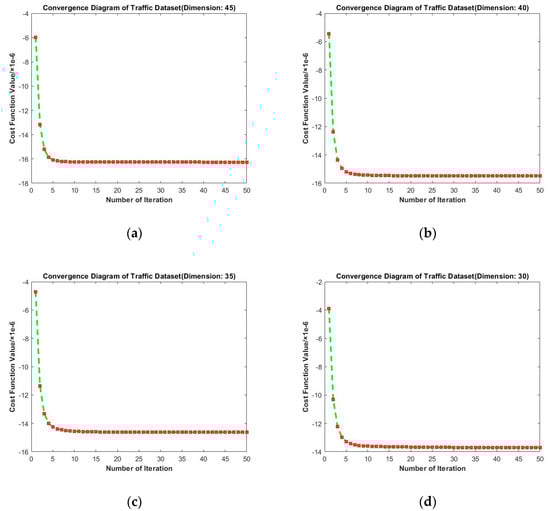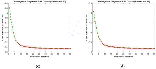 Convergence diagrams of RMTSISOM-SPDDR on BBT are shown in Figure 12. They indicate that our algorithm basically reflects preferable convergence performance. For each dimension, the curve was highly similar, generally leveling off after 15–20 iterations and there was almost no fluctuation.