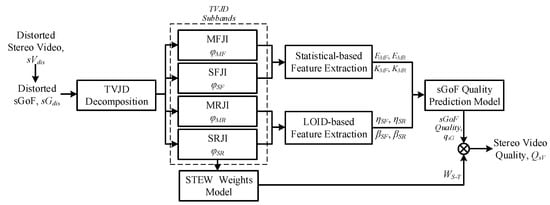 Referring to scalable image processing, in TVJD, it is only necessary to further decompose the low frequency subband. Accordingly, in MDA-SVQM, a 16-frame sGoF can be decomposed into six subbands by TVJD. After that, further exploration for subband characteristics is needed, so that feature extraction can be more consistent with visual perception.