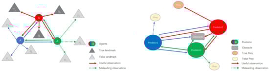 - Sukhbaatar, S.; Fergus, R.; Szlam, A. Learning multiagent communication with backpropagation. In Proceedings of the Advances in Neural Information Processing Systems, Barcelona, Spain, 5–10 December 2016; pp. 2244–2252. [Google Scholar]