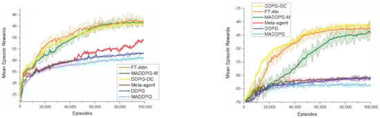| MADDPG-M | −66.73± 5.43 | −66.89 ± 8.43 | −67.13 ± 6.64 | −66.95 ± 6.65 |