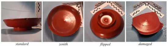 Another interesting division of the dataset is the viewpoint from which the photograph was taken. We have manually labelled three viewpoints, namely: standard view, zenith view, flipped vessel. An example of each viewpoint can be seen in Figure 4. In both standard and zenith views the vessel is standing on its base, whereas in flipped view it is supported by its rim.