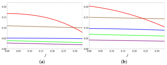 along with Equation (9). It follows that . Consistent with Equations (15) and (A25), we then calculate the strictest condition on the allowed range of J (Appendix C), which is given by the following.