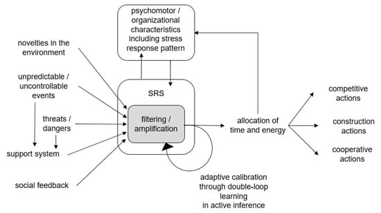 ACM addresses the allocation of finite time and energy by the stress response system to alternative options for actions, depending upon individuals’ life histories and changing external contexts [22]. ACM is relevant to organizational life cycles from an entrepreneur with a startup idea through to the few startups that grow to become large organizations. For example, the need to manage stress is recognized in literature concerned with entrepreneurs [24,25] and large organizations [26,27]. Active Inference Theory (AIT) is a physics of life process theory [23], which is a corollary of the Free Energy Principle (FEP) [28]. Within AIT, living things, including humans, implement internal generative models in order to survive. This involves humans surviving by taking action to align their internal generative models with sensory inputs from external states. In accordance with FEP, this is done to address the existential need for active systems to minimize the long-term average of unwanted surprise from external states: i.e., from the world [28]. Within stress studies incorporating AIT, stress arises from existential information entropy in trying to align the internal state with the external state: i.e., stress arises from uncertainty about survival [29,30]. Apropos, stress can lead to the collapse of higher goals in internal generative models [29], and stress can lead to the formulation of maladapted internal generative models with negative prior expectations that override positive sensory inputs [30].