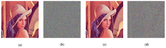 The performance of the proposed image encryption algorithm is analyzed after encrypting and decrypting the Lena color image separately, following the steps given in Section 3. The operating environment of the algorithm is a Windows 10 operating system with a 2.5 GHz Intel CPU I5-4200, 4 GB RAM, and Matlab 2020b.