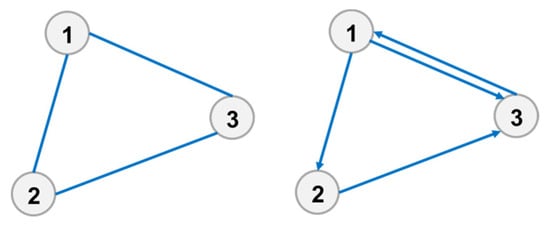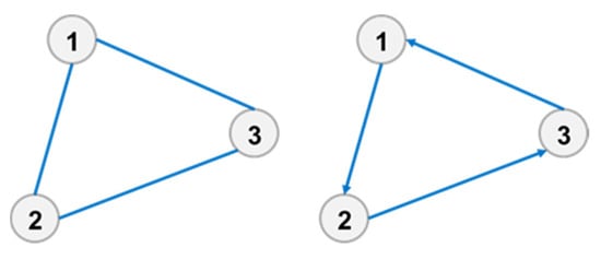 For a directional relationship, the calculation results of a timeliness microstate exhibit significant differences, as shown in Figure 3. In the left figure, the shortest distance between element 1 and element 3 is 1. However, in the right figure, the shortest path from element 1 to 3 is 2, and from element 3 to 1 is 1.