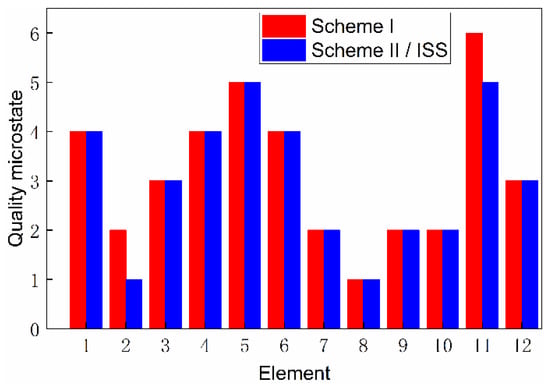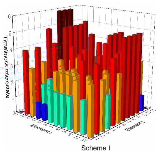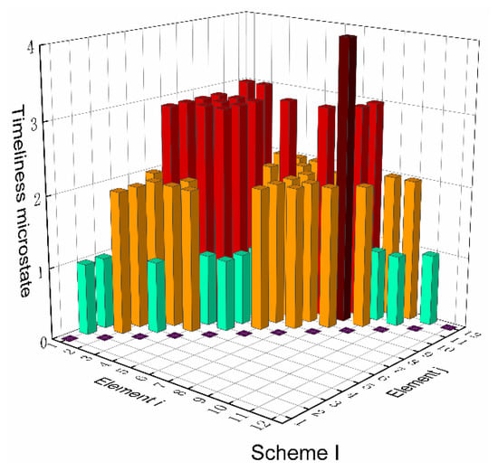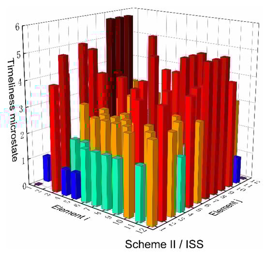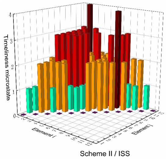 Figure 15 and Figure 16 present the directed network diagrams of top-level scheme I, II and ISS. The timeliness microstates and quality microstates of each element are calculated based on the directed network diagram of the top-level scheme, as shown in Figure 17, Figure 18 and Figure 19.