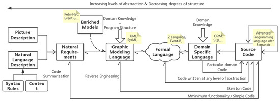 1]. Processing methods more intelligent thatn SCG are opening new possibilities for the input abstraction levels, resulting in the endless emergence of new perspectives. Popular perspectives represented by specific descriptions can be instantiated as domain-specific language, formal language, modeling language, natural requirements, etc. Among these, natural requirements, including natural language or prototypes, have attracted intense academic interest due to their intuitiveness, roughness, and primitiveness.