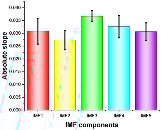 Single-scale entropy change trends/slopes (absolute values) for five IMFs.
