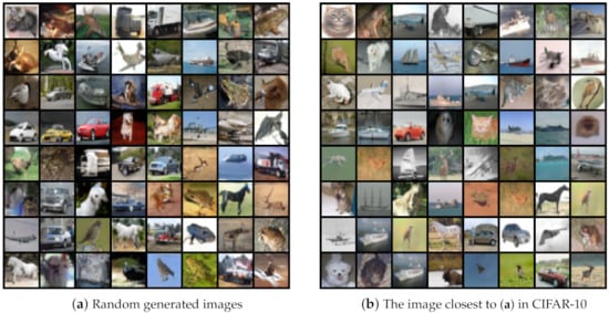 In Figure 11, we show the images randomly generated by SGAN-RSC and the images closest to the generated images in CIFAR-10. The results showed that our model did not copy the images, but learned the distribution of the real images, which can guarantee the diversity of the generation.