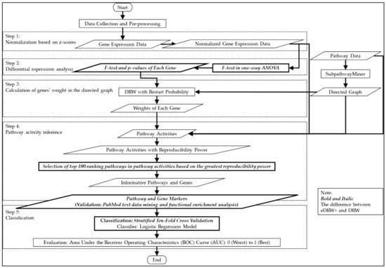 - Liu, W.; Li, C.; Xu, Y.; Yang, H.; Yao, Q.; Han, J.; Shang, D.; Zhang, C.; Su, F.; Li, X.; et al. Topologically inferring risk-active pathways toward precise cancer classification by directed random walk. Bioinformatics 2013, 29, 2169–2177. [Google Scholar] [CrossRef] [PubMed] [Green Version]