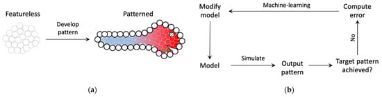 To answer such questions, various conceptual and computational models have been developed [17,18,19,20,21,22,23,24]. Lewis Wolpert, a pioneer in this field, introduced the concept of “positional information”, where a morphogen gradient develops along an axis that the cells could use to decode their relative positions and make morphogenetic decisions in embryogenesis or regeneration [25]. He used the famed metaphor of the ‘French-flag’ to characterize a gradient-like pattern and later proposed models for how such patterns could be developed, sustained and even regenerated [25,26,27]. Pattern formation is a dynamical and multifaceted phenomenon that is not restricted to embryogenesis. For instance, a variety of biological systems possess capabilities of regenerative patterning, that is, adult forms can regenerate full patterns from sub-regions when severed [28]. To understand patterning in its various forms, therefore, several conceptual and mathematical models have been developed since Wolpert’s work. A few notable concepts include “organizers”, morphogenetic fields, epimorphosis, morphallaxis and intercalation [20,29,30]. The concept of intercalation, for instance, explains how an arbitrary piece of a planarian regenerates the whole worm; the anterior and posterior poles of the stump have non-adjacent “positional values” relative to their neighbors, the continuity of which is then gradually restored leading to the formation of the full original pattern. Most notable mathematical models of patterning are based on either simple diffusion or the more complicated reaction-diffusion mechanisms [19,21,22,24], with some exceptions like the ”clock and wavefront model” [31]. A model introduced by Alan Turing, known as “Turing patterns”, for instance, is based on a mechanism of “short-range activation and long-range inhibition” driven by inherent dynamical instabilities [32]. A variety of computational models that view cells as discrete entities (“agents”) containing memory and performing actions or use artificial neural networks in the background for morphogenetic decision-making have been attempted as well [33,34,35,36,37,38]. Even though these models explain certain aspects of patterning in concise and intuitive ways, they do not reveal the full underlying dynamical richness of this nonlinear phenomenon. For instance, a typical analysis of Turing patterns predicts the size and wavelength of the emergent patterns using mathematical expressions involving the ratio of the activator and inhibitor diffusion coefficients obtained by linearizing the model. Even though this approach is useful, it still lacks the full picture of a nonlinear computational account of patterning that moreover is also interpretable. Such an account may be invaluable for systematically addressing the inverse patterning problem where one wishes to modify the underlying regulatory systems to achieve desired patterning outcomes [13,39].