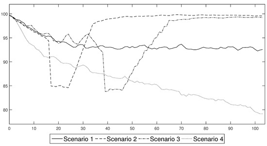 The results for scenarios 1.1, 1.2 and 1.3 were presented in relation to scenarios 1–4 from the research conducted in 2020 [1]. For ease of reading, we briefly described below the assumptions of scenarios 2–4 and the main conclusions. For specific calibration of scenarios 1–4, see Table 4. For more information, see [1].
