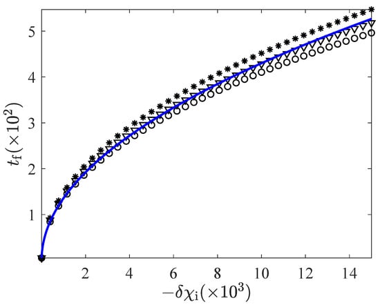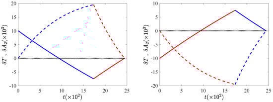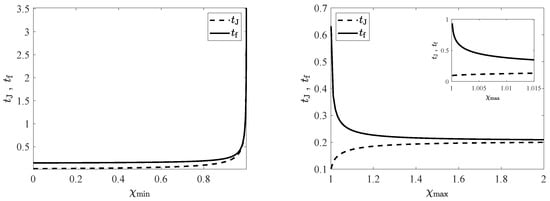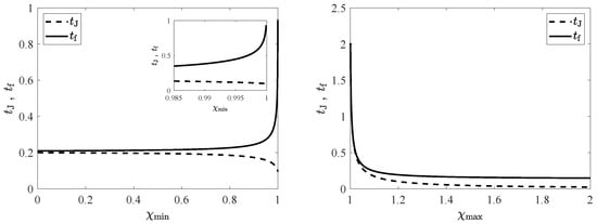 The initial conditions for Equation (23) are supplied by . Therefore, we can obtain as a function of the switching time :