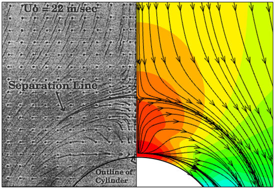 - Eckerle, W.A.; Awad, J.K. Effect of Freestream Velocity on the Three-Dimensional Separated Flow Region in Front of a Cylinder. J Fluid Eng. 1991, 113, 37–44. [Google Scholar] [CrossRef]