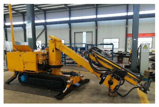 A hydraulic roofbolter, as shown in Figure 1, is a key piece of mechanical equipment employed to install bolts in the roadway of a coal mine. The driller can effectively cut the rock and form holes by controlling the rotation system of a hydraulic roofbolter. After that, the bolts are installed in the holes to fix the surrounding rocks, thereby reliably supporting a roadway. This paper carries out rotary tracking control for the rotation system of a hydraulic roofbolter. High-performance rotary tracking control of the rotation system faces challenges due to dead-zones, disturbances (e.g., inherent disturbance and external disturbance), and uncertain gain [1,2]. In order to ensure the efficient and reliable drilling operation of the rotation system for a hydraulic roofbolter, its rotation speed must accurately track the preset value. Dead zones, disturbances, and other uncertain factors may deteriorate the tracking control of the rotation system. Inappropriate rotation speed of drill pipe may reduce drilling efficiency, even causing broken drill pipes [3]. Therefore, it is of great importance to achieve precise tracking control of the rotation system so as to ensure efficient and reliable roadway support.
