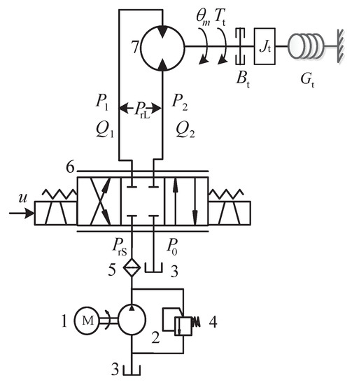 where is the load torque of the hydraulic motor; is the total inertia; is the total equivalent viscous damping coefficient; is the total equivalent stiffness; represents the modeling error.