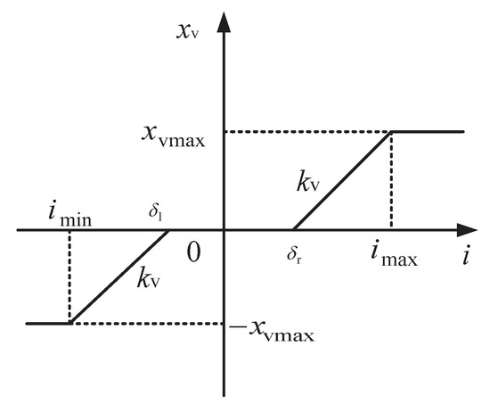 In the rotation system, the hydraulic valve is trapped in the dead zone nonlinearity [3], as shown in Figure 3. Then, the dynamic of spool displacement of the hydraulic valve is formulated as follows: