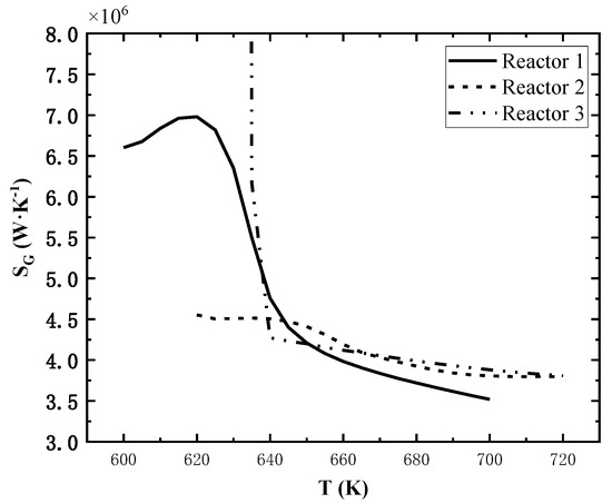 Finite Time Thermodynamics [15,16,17,18] (FTT) has made significant research progress in many kinds of thermodynamic devices, processes and cycles [19,20,21,22,23,24,25,26,27,28,29] since its inception in the 1970s. In chemical engineering, Nummedal et al. [30] found that reducing the length of the ammonia synthesis reactor or increasing reaction heat released could reduce the total entropy generation rate of the reactor effectively. Maansson and Andresen [31] calculated the optimum axial temperature distribution of the ammonia synthesis reactor with the objective of the highest ammonia yield at the same inlet conditions. Badescu et al. [32] obtained the optimal axial temperature distribution, pipe diameter and catalyst particle size distribution of the ammonia decomposition reactor by using the minimum heat flux required to achieve the predetermined ammonia decomposition rate and the maximum ammonia decomposition rate as the optimization objectives, respectively. Koeijer et al. [33] optimized the height of four catalytic beds of the sulfur dioxide oxidation reactor and the temperature difference of five heat exchangers and obtained a 16.7% reduction in the total entropy generation rate. Kong et al. [34,35] optimized the heat source temperature distribution of the hydrogen iodide decomposition reactor for the minimum entropy generation rate. Li et al. [36,37] optimized the inlet parameters of a steam methane reforming reactor heated by molten salt and got a 22% reduction in the total entropy generation rate.