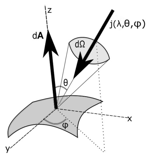 For the incident light coming from the Sun, we have the solid angle subtended by the slab at a distance from the Sun (see Figure 2)