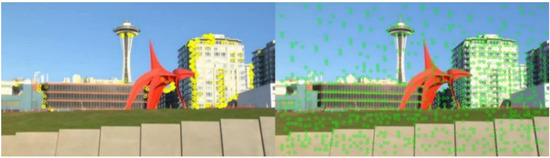 Video of a large flat area (sky): the left shows the distribution of key points generated using manual methods and the right shows the distribution of key points generated using SuperPoint.