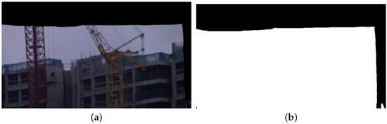 Special binary images for the generated frames: (a) shows the generated stable frame with black edges and (b) shows the special binary map obtained according to (a).