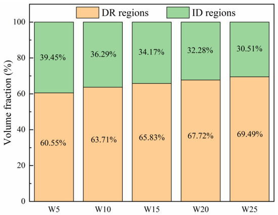 The volume fractions of DR and ID regions of the Wx(TaVZr)100−x RHEAs.
