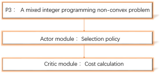 After the AC selection scheme is obtained via an actor module, P3 becomes the solvable problem P4. We substitute the AC selection scheme into the P4 problem to calculate the cost to judge the quality of the scheme. We call it the critic module. The critic module we use only needs to analyze and solve the cost problem to make an accurate evaluation.Then, a small number of comparisons can complete the optimization goal. Compared with traditional critic module, there is no need to compare many value functions, and the small error brought by the value function does not affect the system. The two modules obtained repeatedly and alternately to adapt to the change in the environment are called the AC selection algorithm. The common use of the actor module and the critic module makes the updating of the actions of the edge system more accurate and faster than other DRL methods.